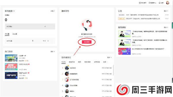 2、进入个人中心里面之后你会看到右上角有一个“拍摄”功能,将其打开;