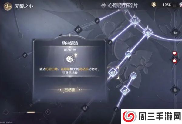 3、兔尾绒团精粹:在无限之心用奇想星升级节点,清洁粉妆免,即可获得免尾绒团精萃。