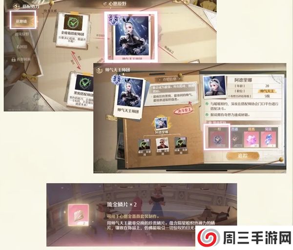 1、琉金鳞片:在搭配势力中,选择花愿镇,击败阿德里娜,能够获得帅气天王徽章,可以兑换两个琉金鳞片。