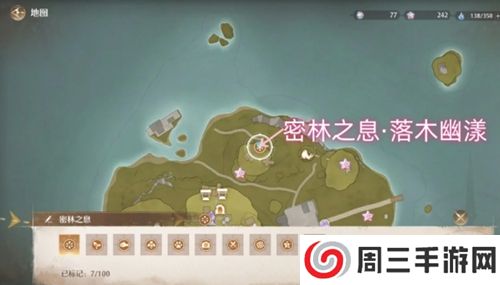 4、借助树叶弹上来,在两层独木桥石桥处,沿墙壁台阶小路下去,即可拿到芽之韵。