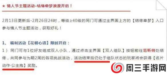 1、2月27日更新后玩家无法通过情人节活动结缘牵梦去获取该奖励;