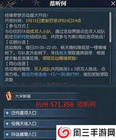 3、先看看结缘牵梦页面是否处于组队状态,没有杭州(517.356)找NPC【范昕何】;