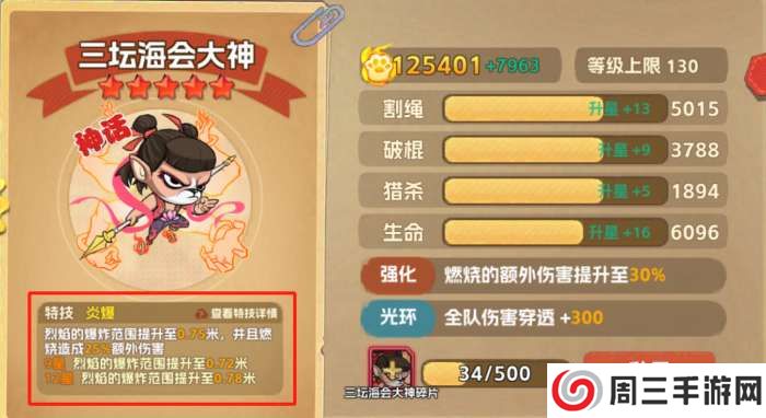 当战斗的号角吹响,他施展出绝技——炎爆!这不仅仅是火焰的狂舞,更是力量的宣泄!烈焰以他为中心,爆炸范围骤增至惊人的0.75米,每一寸空气都仿佛被点燃,而敌人所承受的,不仅仅是瞬间的灼痛,还有那25%的额外伤害,如同被地狱之火烙印,难以磨灭!