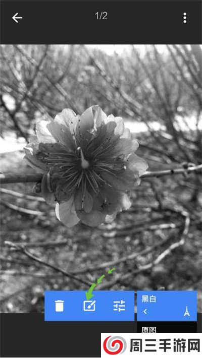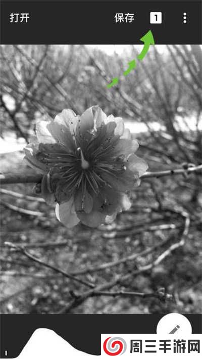 3.在手机右上角,你会看到一个“1”这样的数字,按一下。会出现“黑白”和“原图”再按一下黑白