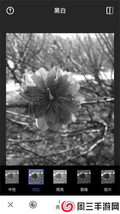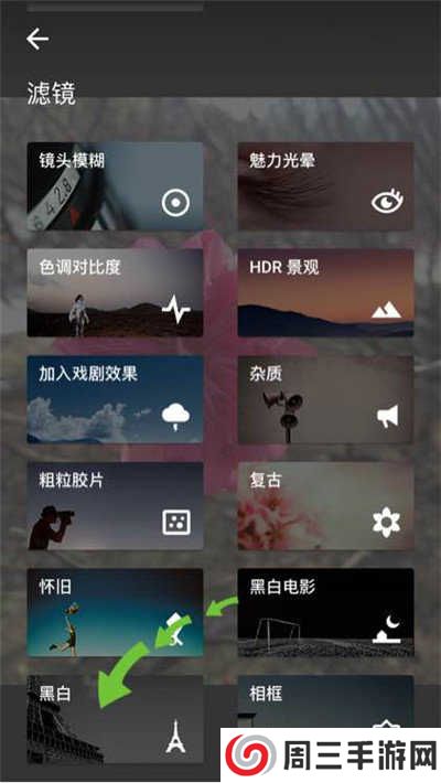 5.根据个人爱好以及图片构成选择合适的滤镜。比如选【黑白】滤镜,因为想做成复古的形式,所以我选择了【胶片】