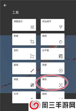 3.调整好基本的参数之后,可以在工具栏选择合适的项目再进行调整,这个看图片的需要。比如可以调一下【晕影】,改变一下柔和度