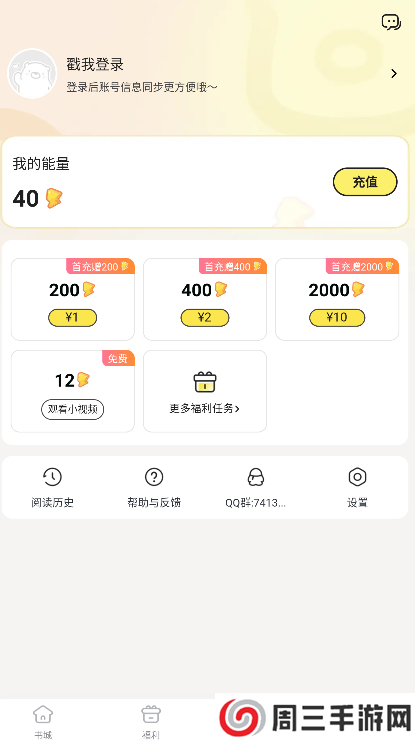 点击下方福利按钮,即可进入福利页面,完成任务获取能量,能量可以用来小说解锁章节等。