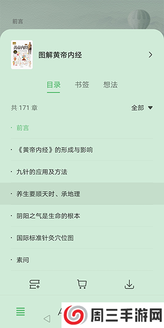 在阅读页界面点击屏幕中间位置后即可展示底部菜单