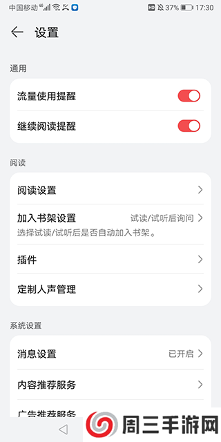 用户在听书时如果要设置自己的语音风格可以在设置页面中点击【定制人声管理】