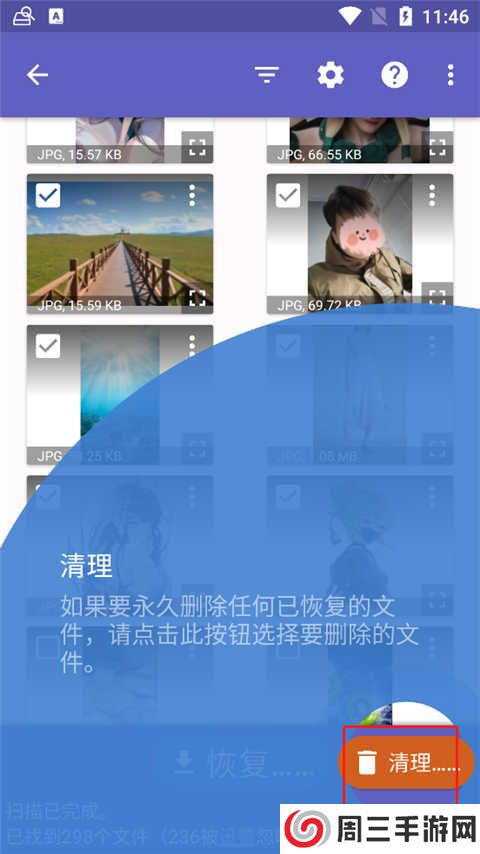 5、当然,你想要永久删除的话,可以点击清理,就能永久的删除可以恢复的文件;