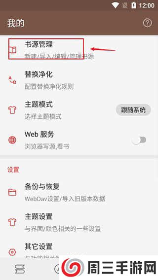 1、在本站下载打开软件,点击右下角【我的】按钮 3、 [书源管理];