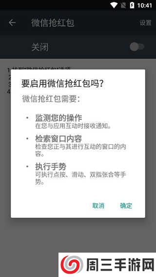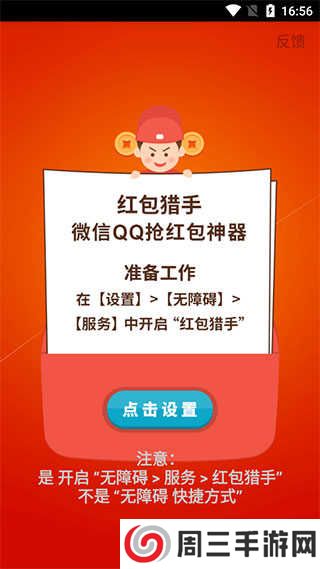 点击点我抢开始抢红包”,根据指引开启抢红包服务,必须开启服务才能正常抢红包。