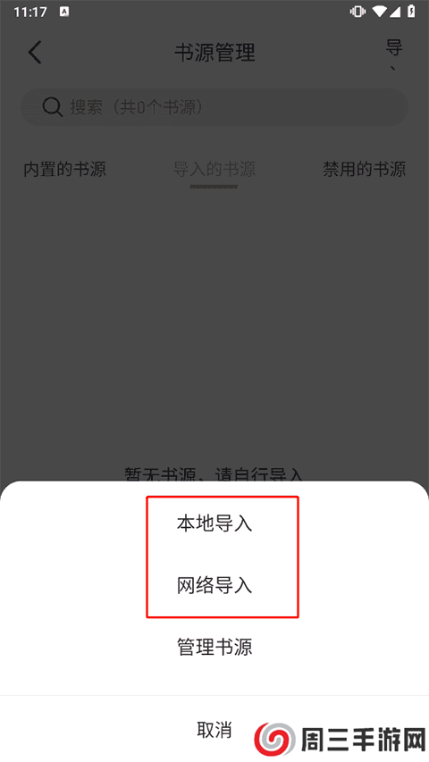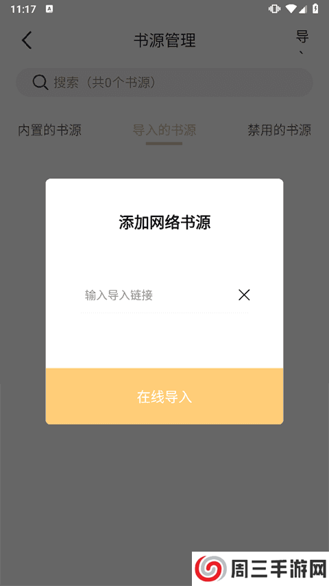 4、例如网络导入,并将书源网址粘贴的框内点击在线导入即可