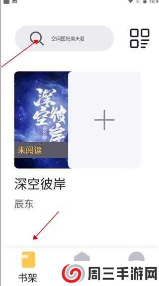 2、进入软件后点击书架,在上方搜索栏中输入自己想看的书籍名称;