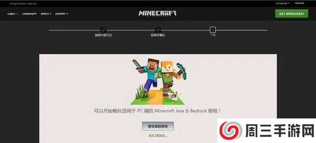 其实按照付款引导,最后一步就是下载项,但是如果玩家不小心退出了网页也没有关系,可以再次进入游戏官网,点击购买Minecraft,这时候就会弹出再次下载的选项,点击即可重新下载。