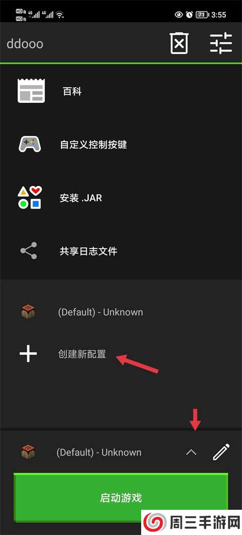 2、点击下面笔图标旁边的选项,然后点击创建新的配置。