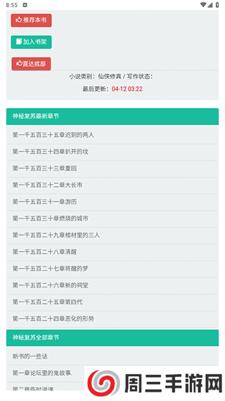 3、点进去一个小说链接,里面有很多的章节,这里点击加入书架是加入不了的