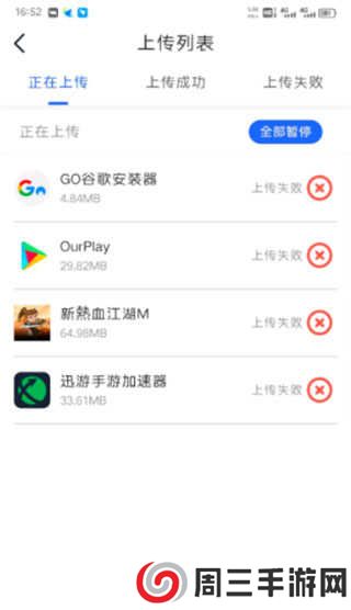 2、接着就阔以上传你想上传的游戏或者应用了,上传的时候*好是在wifi环境中上传,这样网络比较稳定,此外也不会消耗太多流量。