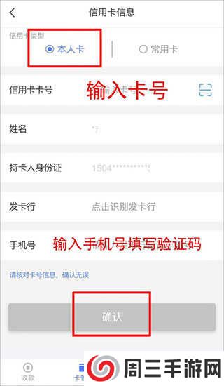 3、本人卡就是指实名认证本人的信用卡,常用卡可以是朋友的卡,必须添加完本人卡才可以添加常用卡;