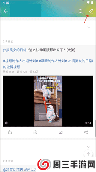 5、当然,如何发微博最新版本也是很重要的,在右上角找到一个铅笔书写符号,写上你想说的内容,