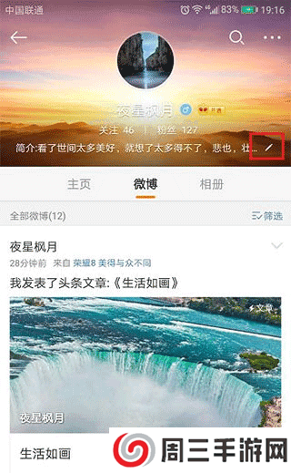 3、会看到自己各个时期发的个人微博,点击上方的编辑按钮。