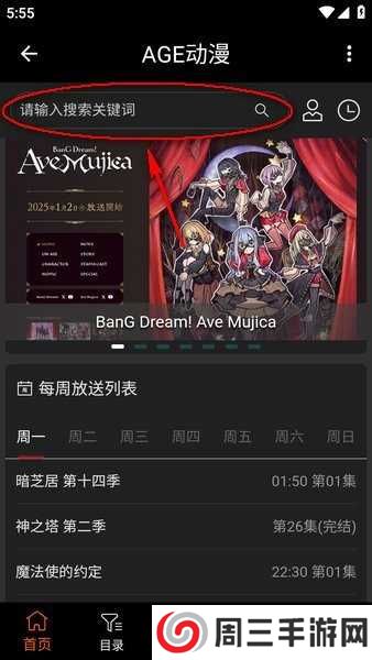 打开age动漫后,在“首页”头部的搜索框输入动漫名就可以进行搜索;