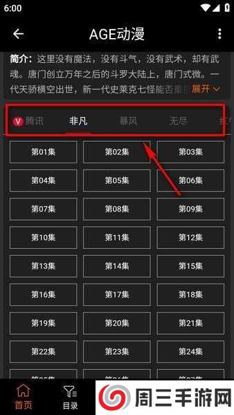 接着选择集数,就开始播放了;注意中间的腾讯、非凡、暴风等是不同的播放页面;