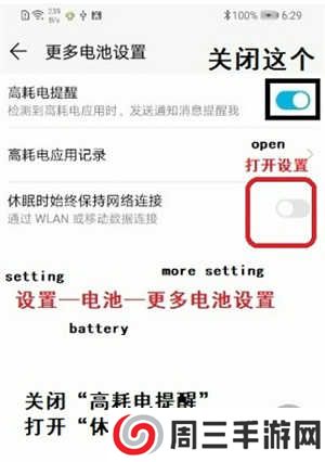 2.找到手机里面的设置-电池-省电那开关关闭,在下面的耗电保护列表里面找到X8沙箱,把后台冻结和异常耗电自动优化和深度睡眠全部搞成关闭状态即可。