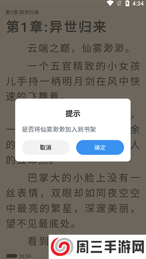 4.如果看完后,我们点击返回便能直接将看的小说收藏到书架。