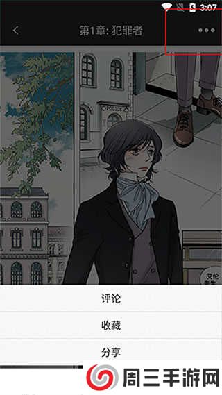 在漫画的右上角有三个小点,大家只需要点击那三个小点就能将自己喜欢的漫画分享给好友。