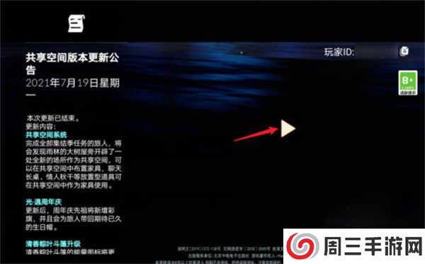 1、我们打开游戏在主界面去点击右边的三角按钮;
