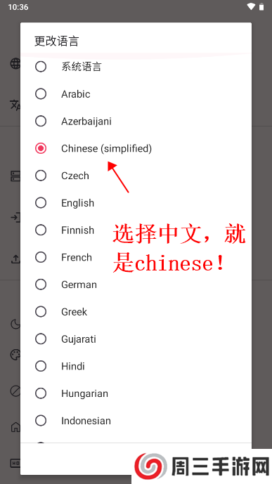 2.在更改语言这一栏目,可以进行语言更改,选择中文就可以了。