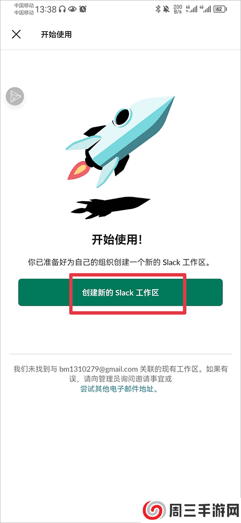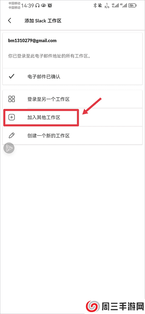 4、最后选择你要使用的电子邮件地址,如果有管理员向你发送邀请时,当你使用该电子邮件进入后就会有邀请链接,点击链接即可加入新的工作区