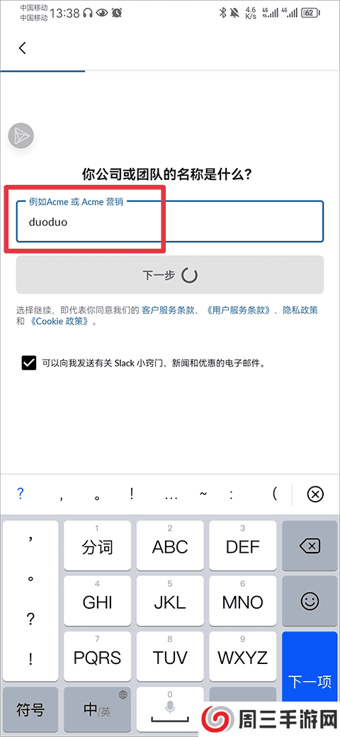 3、然后跟随步骤创建公司或团队的名称、频道等操作