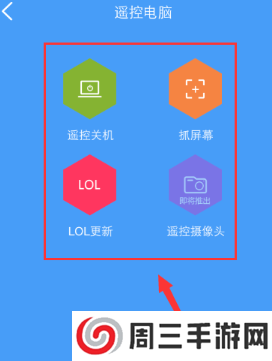 5、在弹出的界面,就可以点击【遥控关机】按钮来关闭电脑,或者点击【抓屏幕】来获取当前电脑的屏幕,等等。而且即将还要推出控制摄像头的功能