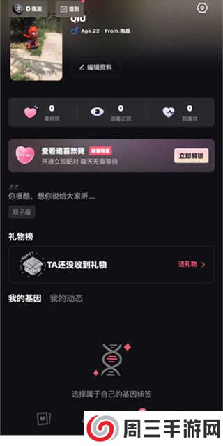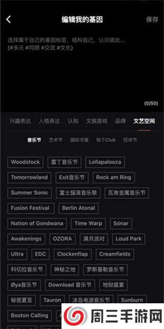 2、在我的基因出点击搭建基因库,当您搭建完成后能更精确地分享至同类性格的人群当中。这里有各式各样的基因标签,选择自己的性格特征标签吧,最多能填写50个标签,填写完成后返回第一步;