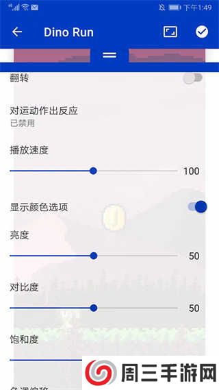2、进入壁纸动态预览界面,选择下方【两条杠】图标,可进行翻转、播放速度、亮度、对比度、饱和度等设置修改,