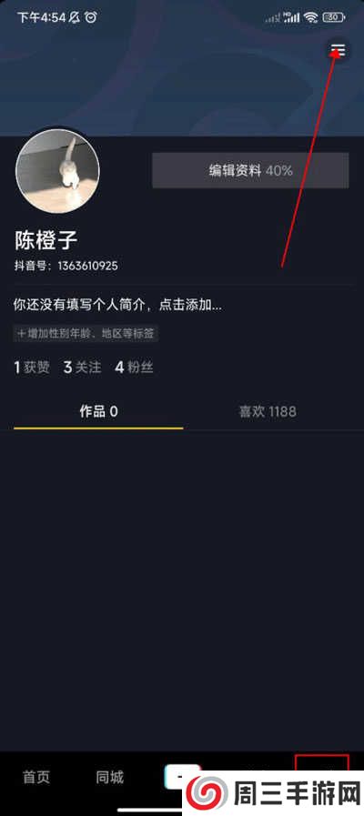 1、打开抖音后,在底部点击右下角的我。进入到我页面后,再点击右上角三条横杠