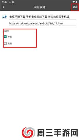 4.可以选择将想要收藏的页面收藏在桌面或者书签的位置,点击“确定”即可