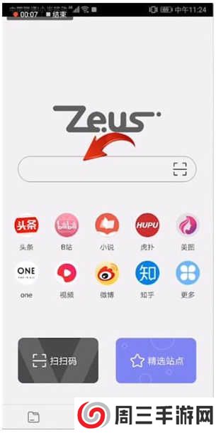 1.首先在手机端打开宙斯浏览器,并点击视频,打开视频网站。如图