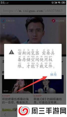 5.设置一下权限,点击“继续”,在弹出的窗口中选择“允许”就会自动下载该视频了。