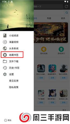 2.点击左上角,更多按钮,可以直接访问小说、视频、新闻要点等页面