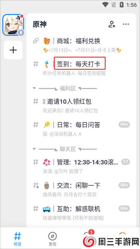 1、进入软件,选择关注的频道进行签到打卡可获得积分
