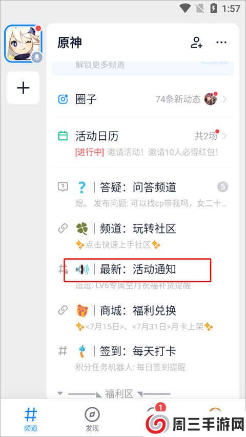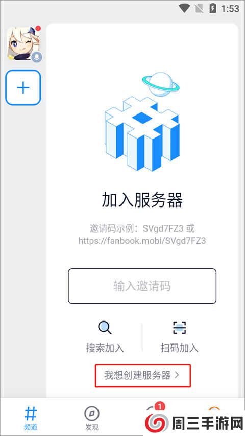 1、进入Fanbook安卓最新版,在频道出点击我想创建服务器