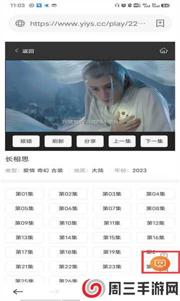 首先打开你想要观看的影视剧集,在播放界面找到“tv投屏”按钮。