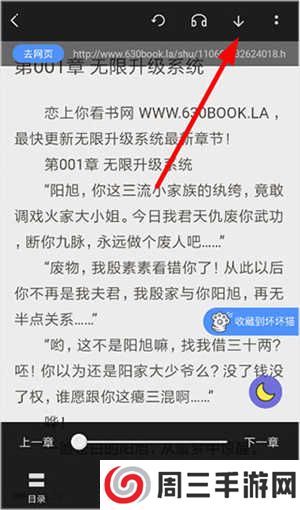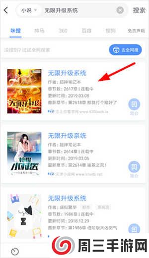 2.以“无限升级系统”为例子,大家可以通过上方的列表选择不同的书源,然后点击进入阅读界面下载文件;