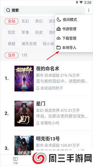1.首先打开坏坏猫小说最新版,点击右上角的本地导入功能;