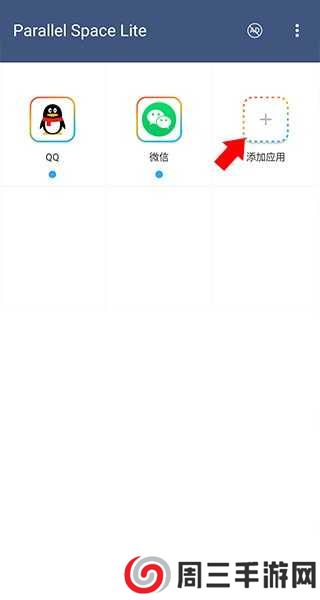 4、接着回到主界面,点击右侧的添加应用按钮可添加手机内的游戏等应用