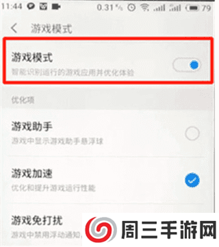 4、最后打开游戏模式的开关即可打开,反之关闭。