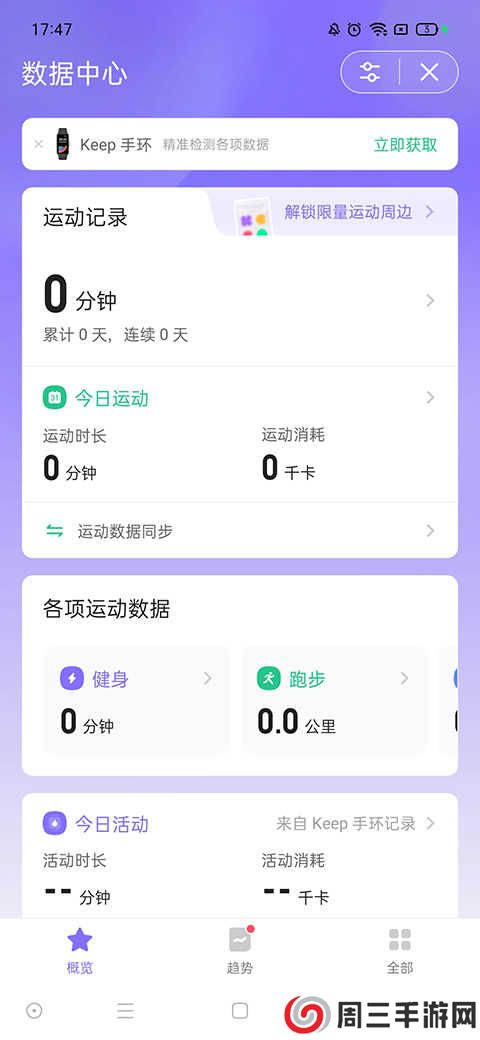 1、第一步打开我们的手机,点击keep,进去keep我的界面之后,点击总运动。
